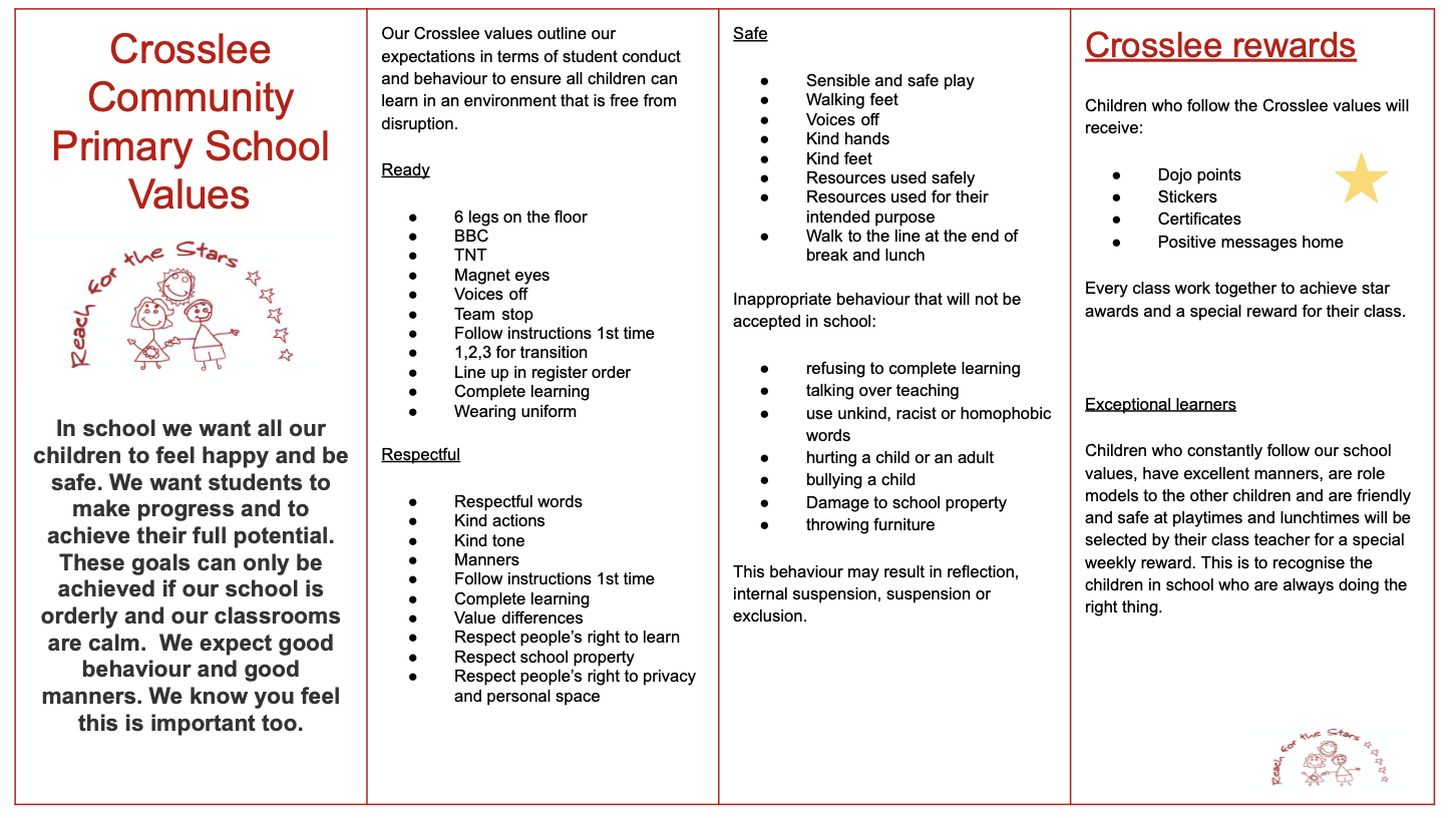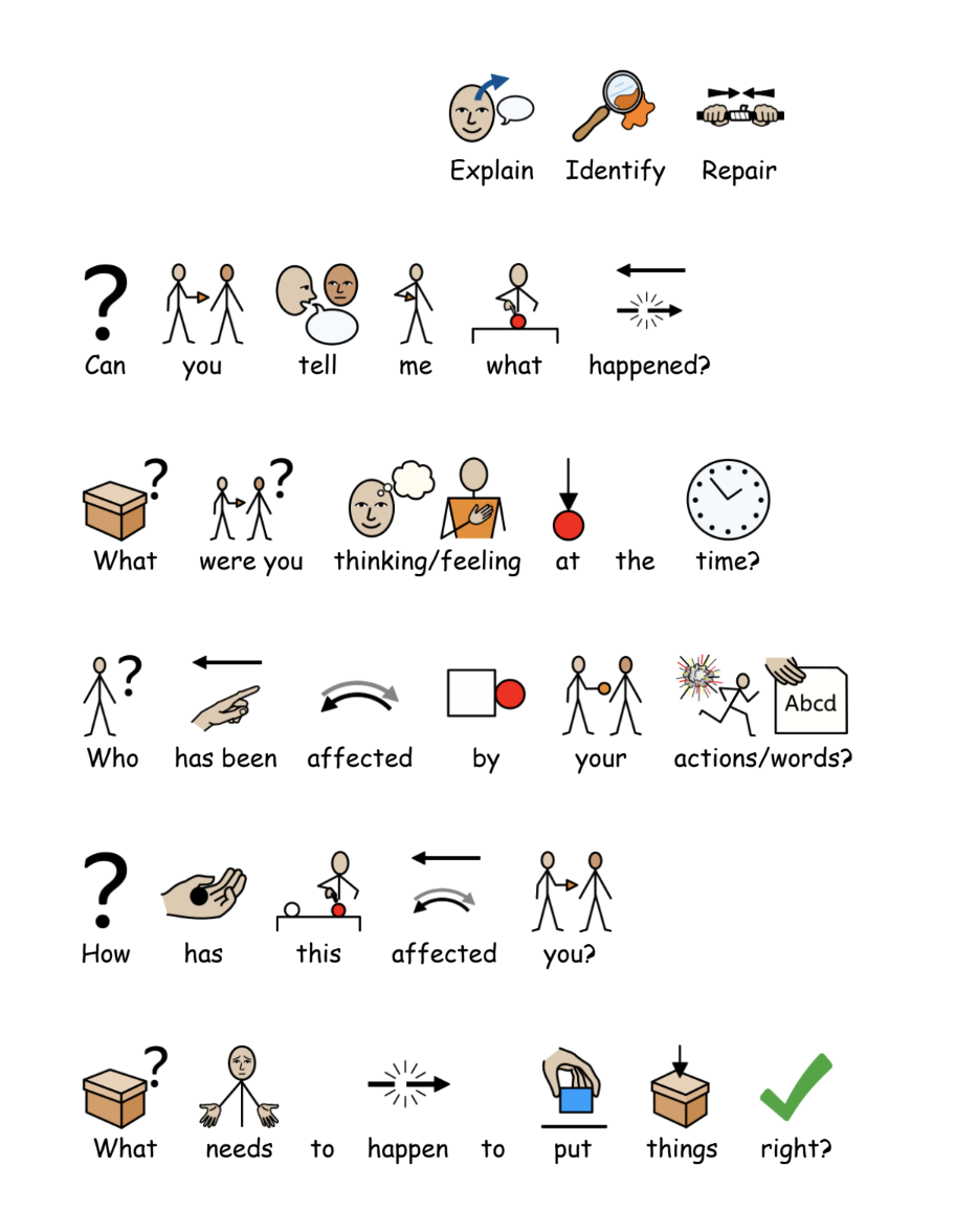 At our school, we use a restorative approach to behaviour, focusing on helping pupils learn from their actions and strengthen their relationships with others. Following an incident, staff engage the pupil in a reflective conversation built around three key steps: Explain, Identify and Repair. Pupils are encouraged to explain what happened from their perspective, identify the impact of their choices on themselves and others, and repair the situation by considering positive actions they can take moving forward. This approach supports accountability, empathy and personal growth, creating a calm, respectful and inclusive school community.